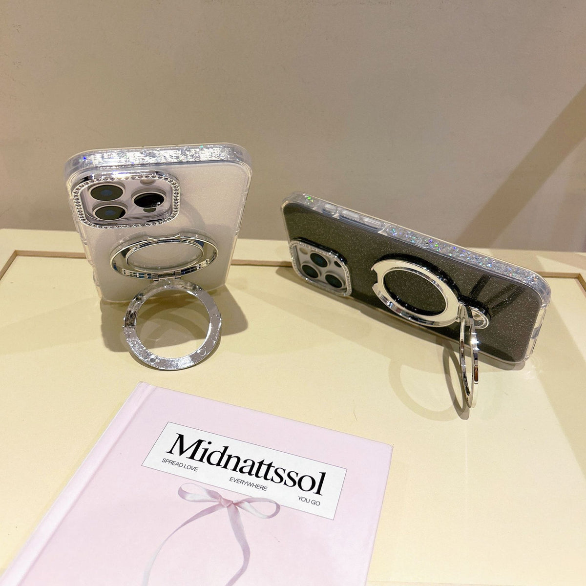 Color: YJ round edge glitter stand with rhinestone pink, YJ round edge glitter stand with rhinestone purple, YJ round edge glitter stand with rhinestone yellow, YJ round edge glitter stand with rhinestone blue, YJ round edge flash bracket with rhinestone white