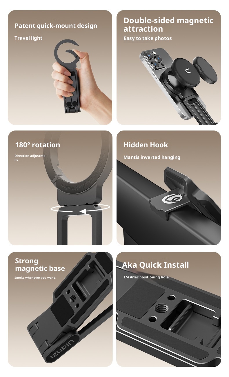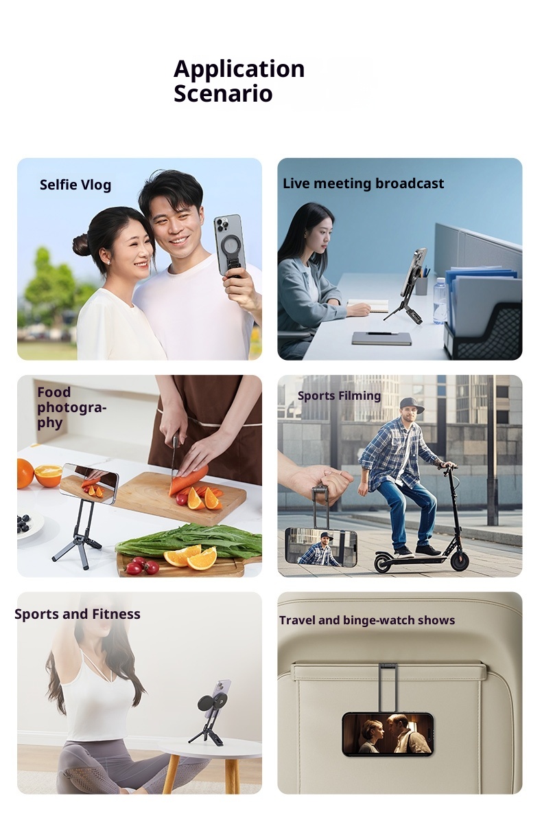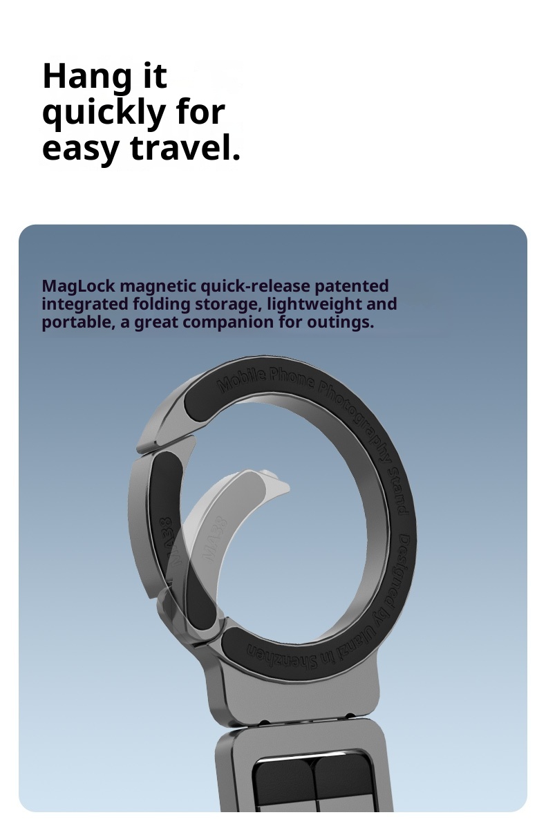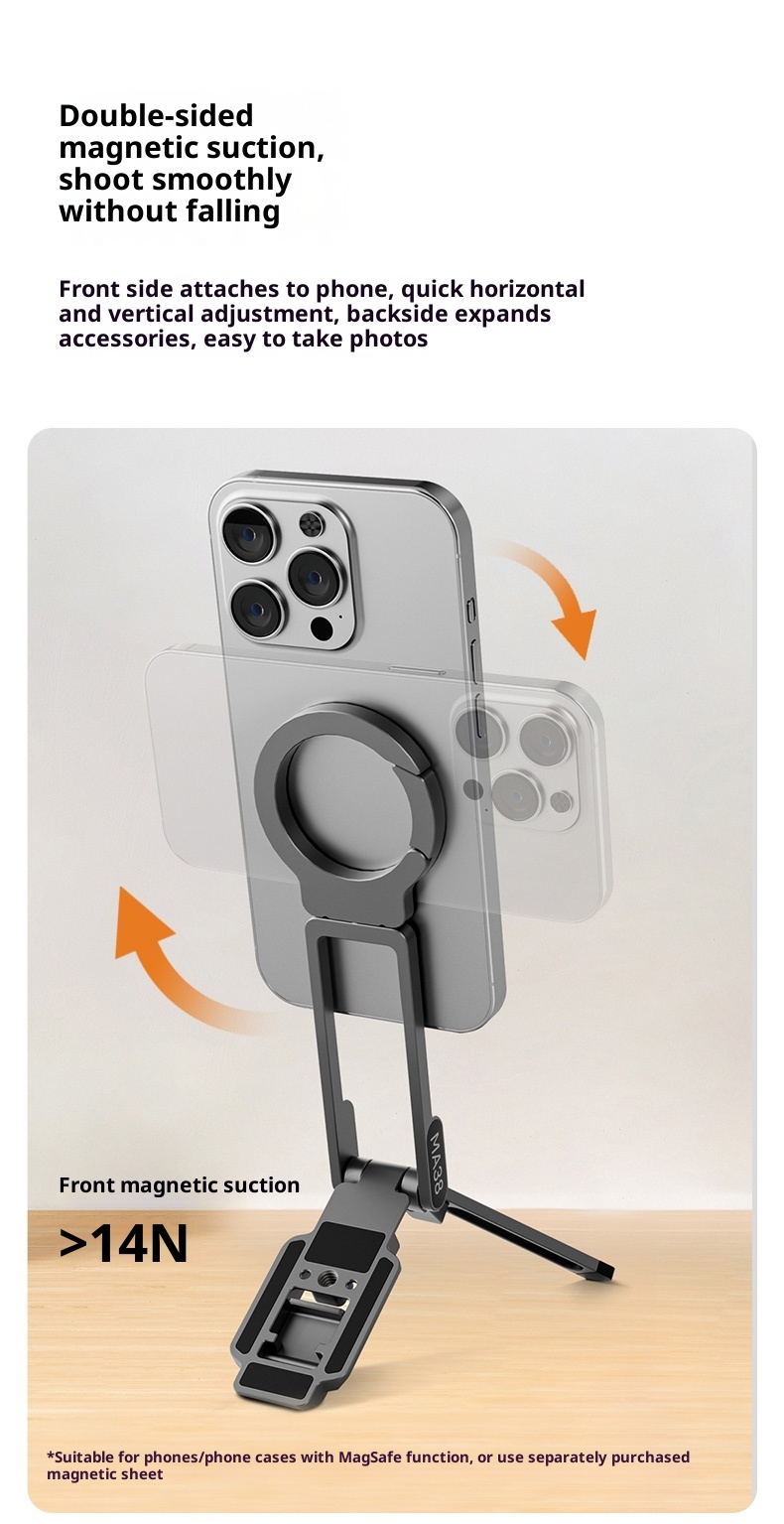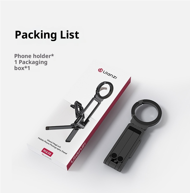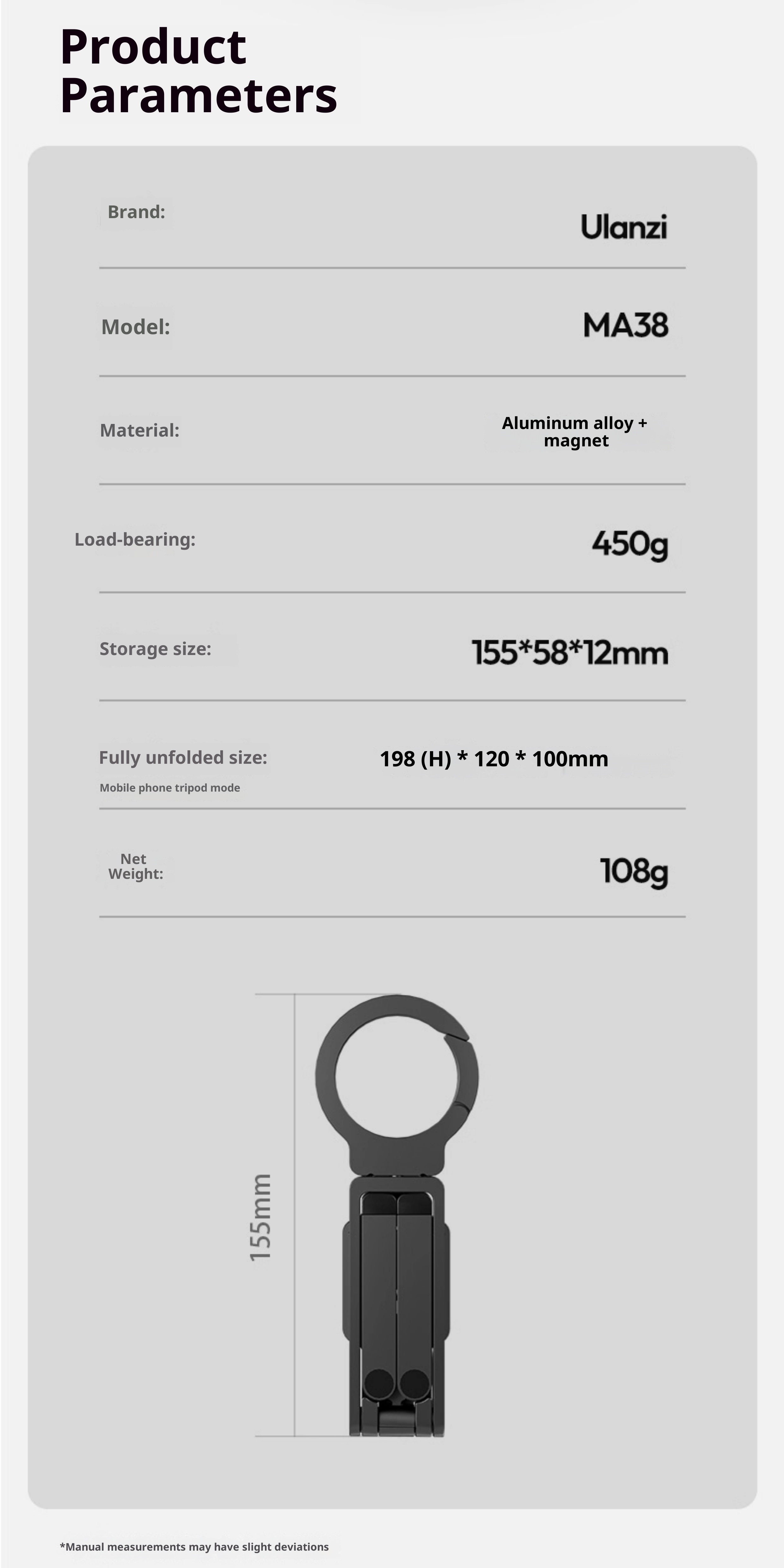 Product information: Model: MA38 Material: Aluminum alloy + magnet Load capacity: 450g Storage size: 155*58*12mm Fully expanded size (phone tripod mode): 198(height)*120*100mm