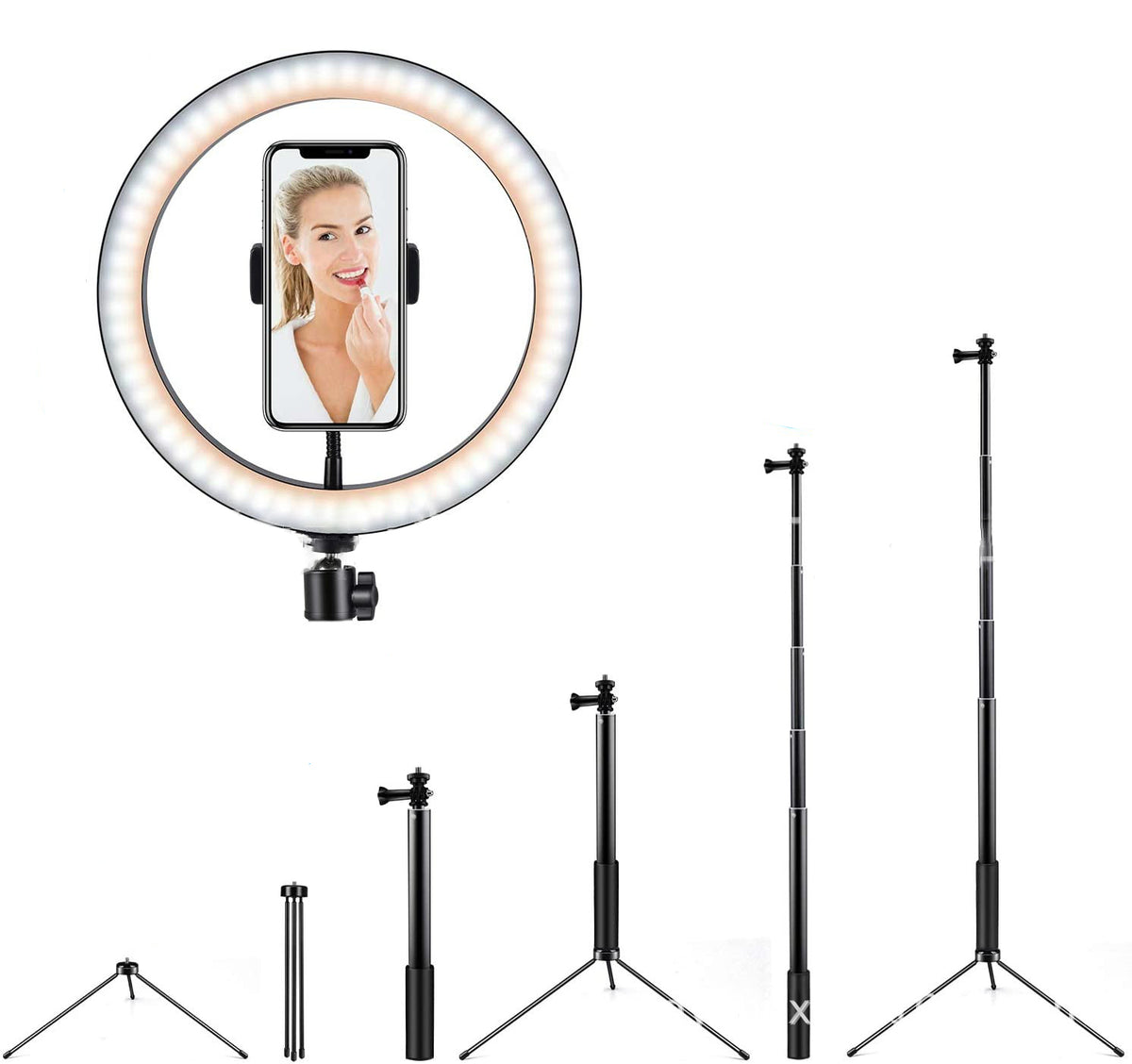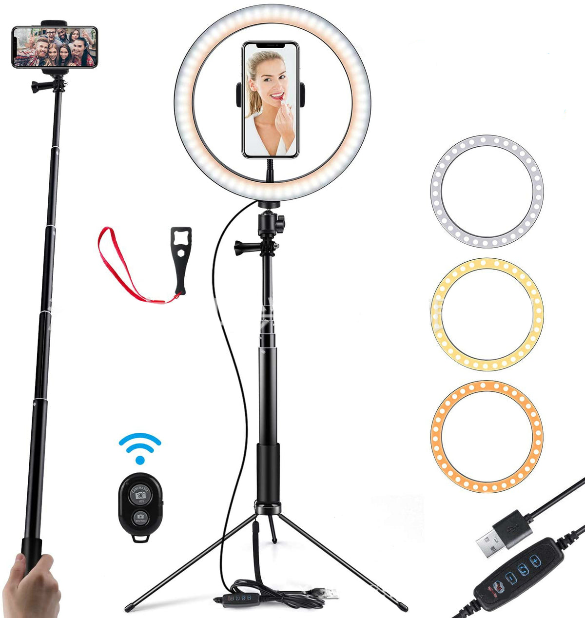 Packaging list: Ring light Bluetooth remote control selfie stick metal holder